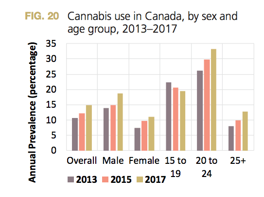 گزارشی که در ماه می 2019 توسط سازمان آمار کانادا منتشر شد نیز نشان میدهد که استفاده از ماریجوانا همچنان در حال افزایش است.
