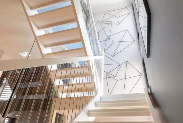به گزارش تورنتوپرشنز، ویژگی درونی این خانه دکوراسیون داخلی آن می باشد. به تصویر زیر نگاه کنید. بعد از اینکه خریدار وارد خانه می شود، به این طراحی روی دیواربر می خورید که منحصر به خود می باشد.
