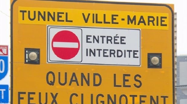 و علامتی کشیده شده از تونل Ville-Marie که می گوید: “Respectez les feux de voies.”