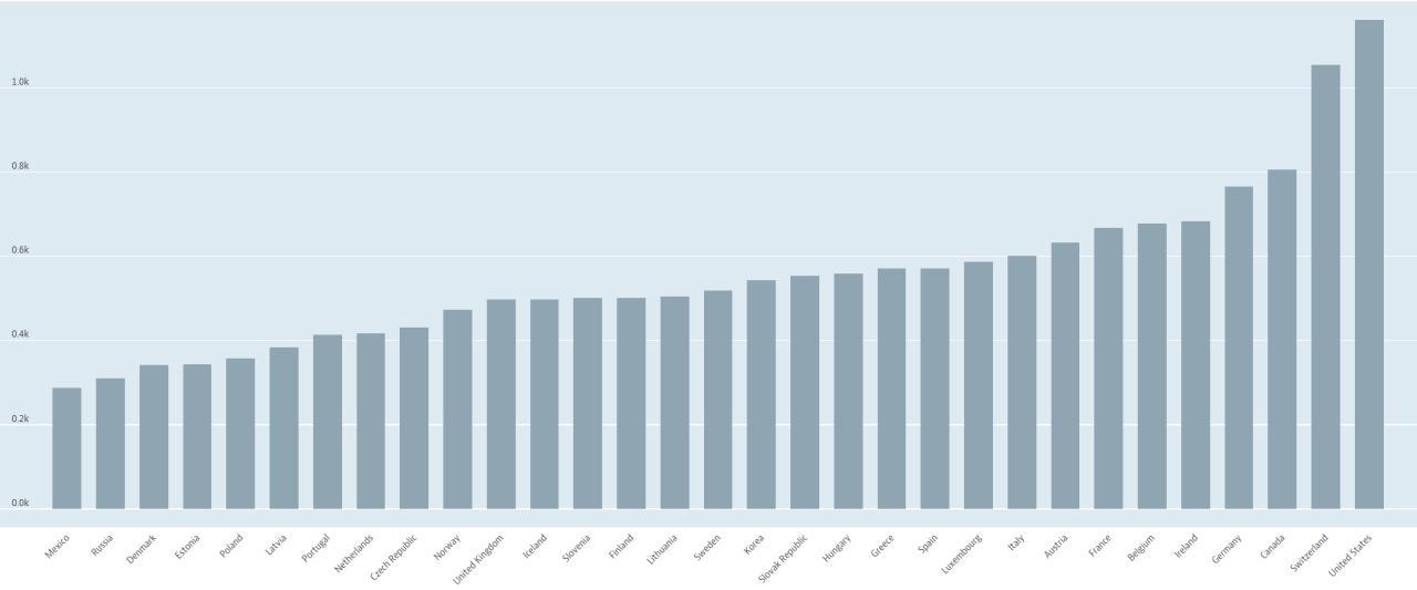Pharmaceutical spendingTotal, US dollars/capita, 2015