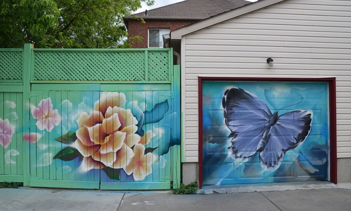 این نقاشی نزدیک پارک Flestead توسط هنرمند سبک نقاشی دیواری، Nick Sweetman، با حمایت مالی David Suzuki جهت بزرگداشت هفته ملی گرده افشانی به تصویر کشیده شده است. Nick که خود شخصا خانه به خانه از صاحب خانه ها برای نقاشی اجازه گرفته است می گوید: "درست است که میلیون ها مشکل دیگر وجود دارد و شاید برای خیلی ها محل زندگی پروانه ها در اولویت نباشد، ولی به عنوان یک هنرمند تلاش می کنیم تاثیری مثبت بر جامعه بگذاریم. اگر فقط تعدادی از بچه ها از مشاهده نقاشی ها لذت ببرند و علاقه مند به گل ها و پروانه ها بشود کافی است."