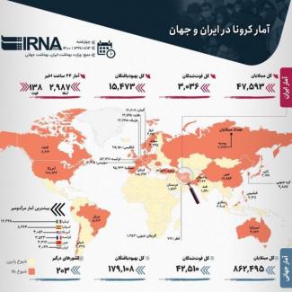 اینفوگرافی آمار کرونا در جهان - ۱۳ فروردین
